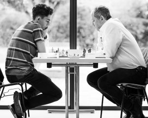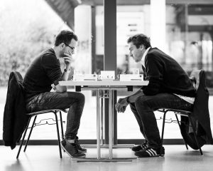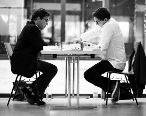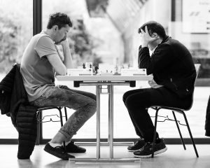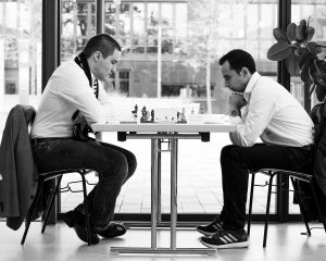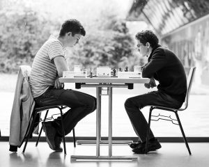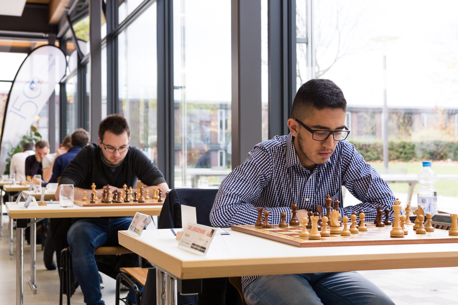 Das einzige Heimspiel-Wochenende des SC Eppingen in der 2. Bundesliga Süd verlief nach den Erwartungen, obwohl die Aufstellungsprobleme des SCE nicht zu übersehen waren. Am Samstag-Spieltag kreuzte der Ligafavorit SC Viernheim mit einer Supertruppe in der Mensa am Berliner Ring auf, angeführt vom ägyptischen Weltklasse-GM Bassem Amin. Eppingen wehrte sich tapfer, obwohl die Prognose mit 1,37:6,63 gegen die Gastgeber sprach. Zur Zeitkontrolle stand es 1:3. An Brett 2 gewann der 17-jährige IM Florian Mesaros gegen den israelischen GM Ilia Smirin, der ein Wertungsplus von 226 Punkten vorzuweisen hatte. IM Christopher Noe (1) gegen GM Amin, Emran Hamid (7) und FM Anton Bilchinski (5) verloren. Auch nach der Zeitkontrolle leisteten die Gastgeber erbitterten Widerstand. FM Jonas Hacker (4) spielte gegen den spanischen GM Anton Guijarro mutig auf Gewinn, musste aber dann doch ins Remis einwilligen, ebenso FM Danijel Gibicar (6), der dem französischen GM Maze einen halben Punkt abnötigte. GM Zoltan Medvegy (3) und Teamchef Jonas Reimold (8), der eingesprungen war, verloren nach tapferer Gegenwehr. 2:6 – das war nach den Umständen ein ehrenvolles Ergebnis! Parallel gab es eine Überraschung: Aufsteiger FB Mörlenbach gewann gegen SCE-Reisepartner SC Untergrombach, der höher eingeschätzt worden war, mit 5:3.